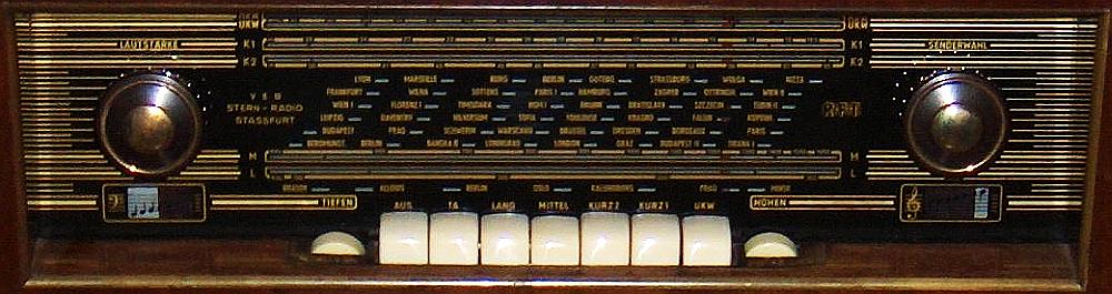Diese Skala findet sich so in allen Geräten dieser Baureihe, also sowohl im Meistersinger als auch im Rheingold und ebenso in einer Reihe von Tischgeräten, die mit diesem Chassis/Spulensatz bestückt sind. Interessant am Rande: So eine Skala kostete ungelocht gerademal DM 3,40 (DDR) und sie wurde natürlich nicht von einem Radiohersteller sondern von einem Zulieferbetrieb der sich auf Siebdruck verstand bezogen. Für die Löcher war jeder Monteur selbst zuständig, der so ein Glas wechseln durfte. Auch die Milchglasscheiben sind stets ungelocht geliefert worden.